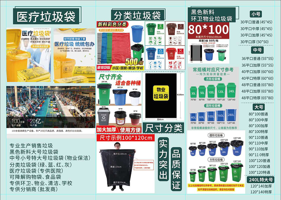 專業生產大號垃圾袋、特大號垃圾袋、中小號平口垃圾袋等